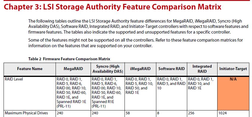 broadcom官方MR、iMR、IR和IT软件功能比较矩阵